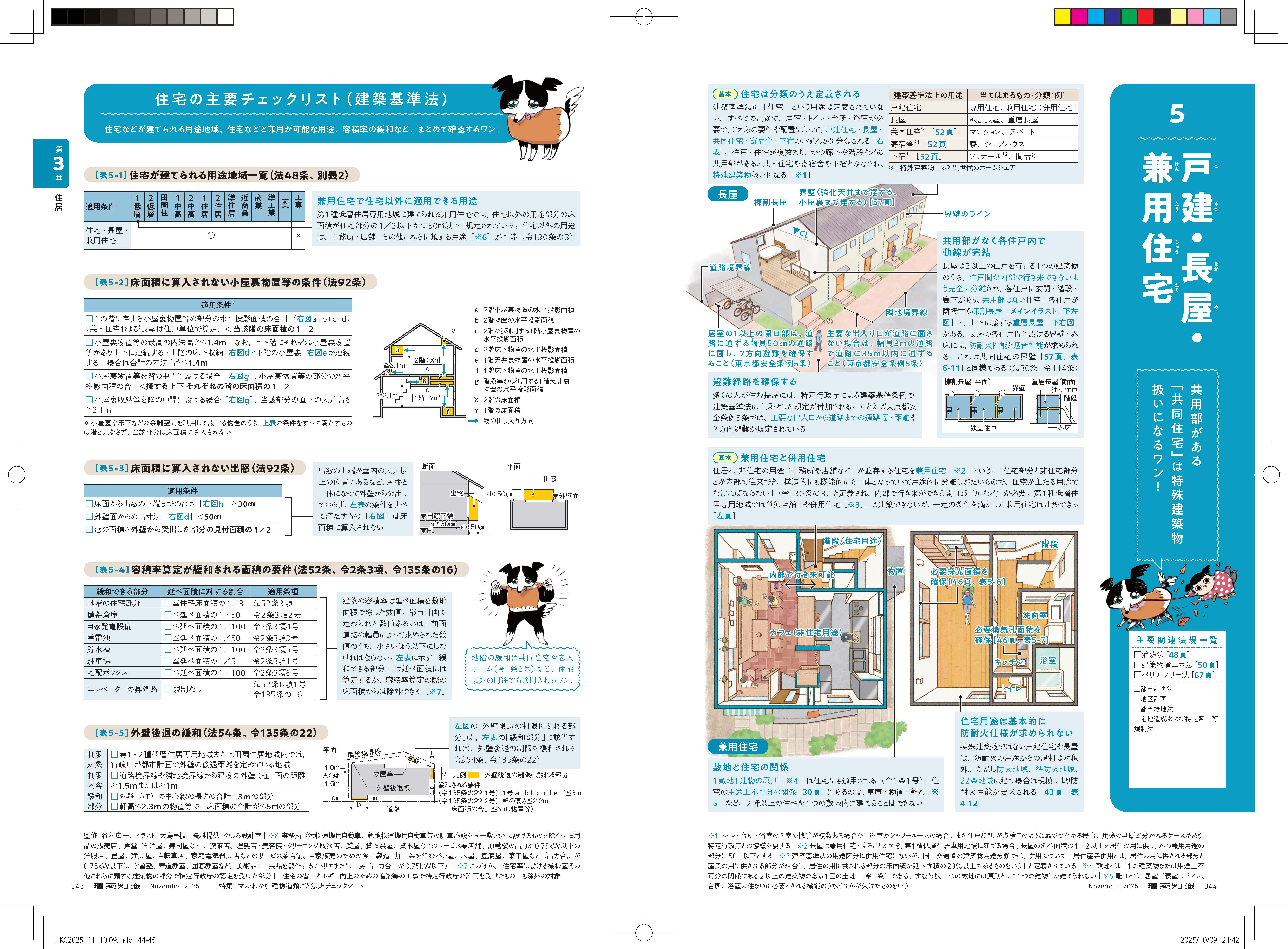 設計で避けては通れない、建築法規。 本特集では、設計時に確認すべき法規とその要件がひと目でわかる、 法規チェックシートを“建物種類ごと”にまとめて解説! さらに建築基準法だけでなく、消防法や建物種類に応じて医療法、工場立地法、児童福祉法など、関連法規もチェックシート形式で同時に確認できます。 特例の見直しや壁量基準など昨今の法改正も盛り込んだ 建築実務者必携の1冊です!