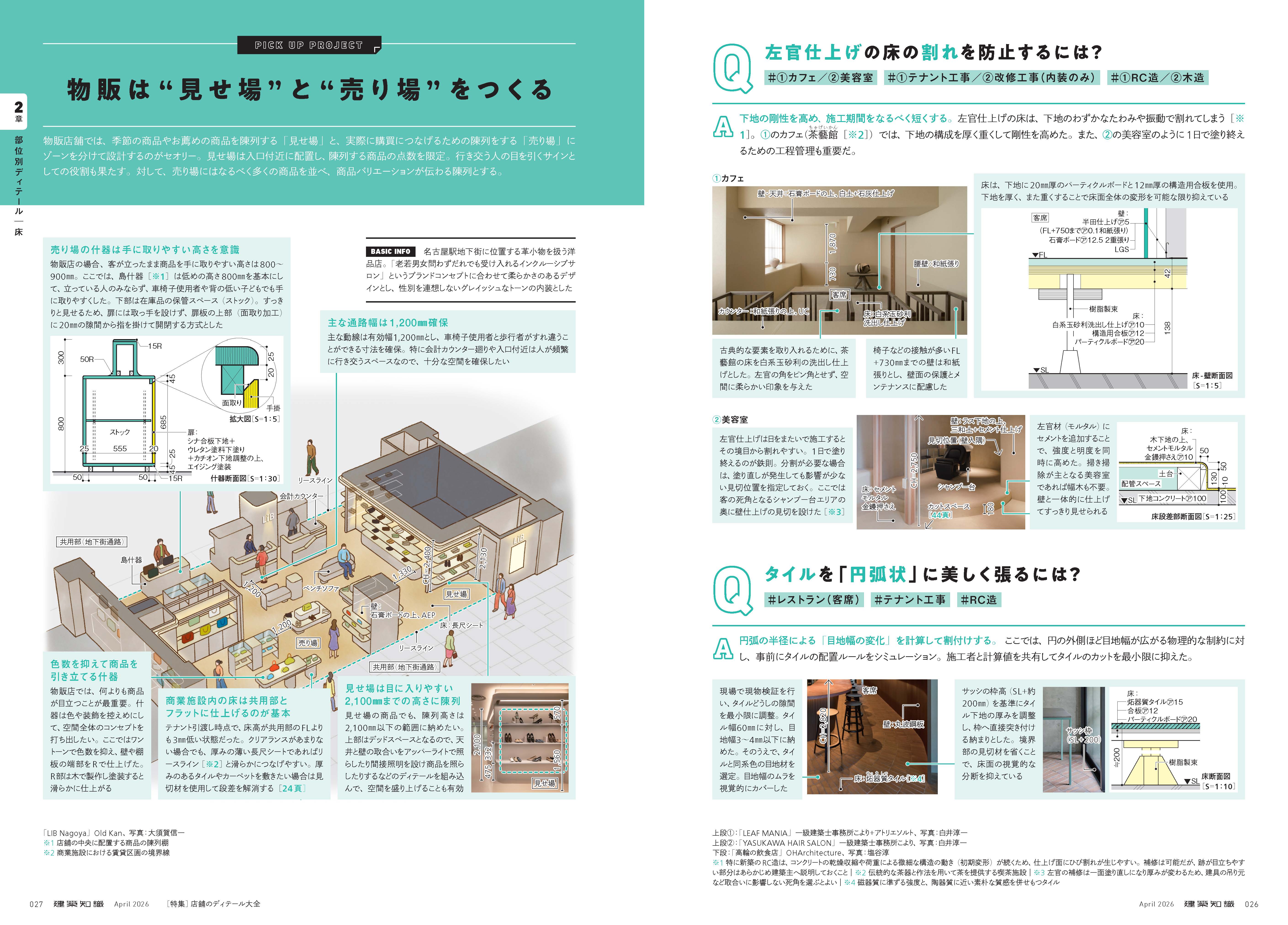 本特集では、物販店・飲食店・クリニック・宿泊施設など多様な業態の店舗を取り上げ、ディテールを図面や写真とともに徹底解剖!