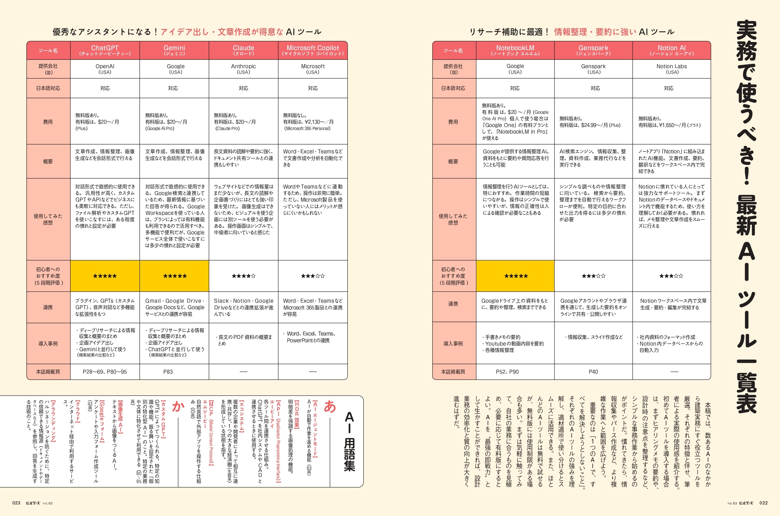 巻頭 実務で使うべき! 最新AI ツール一覧表