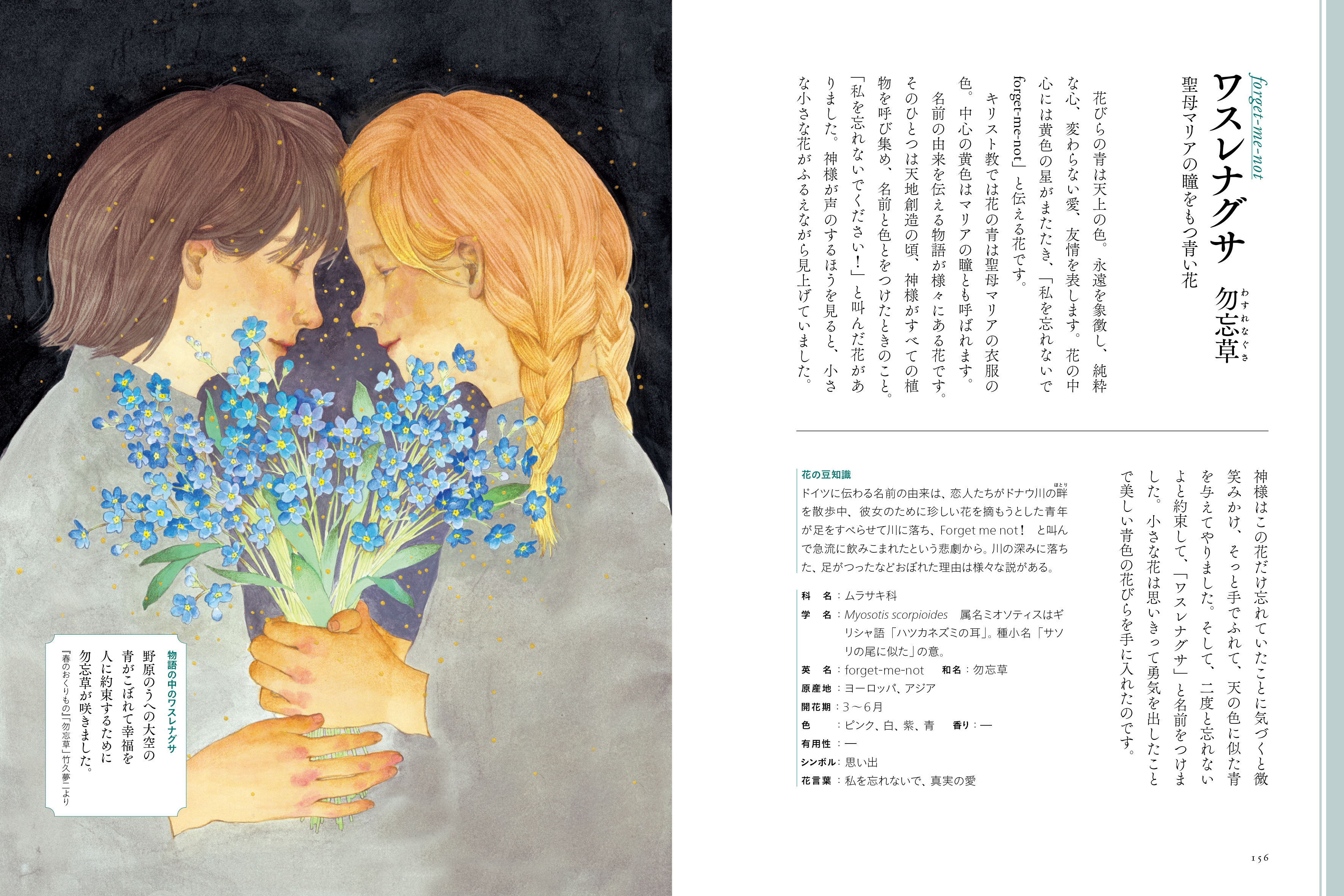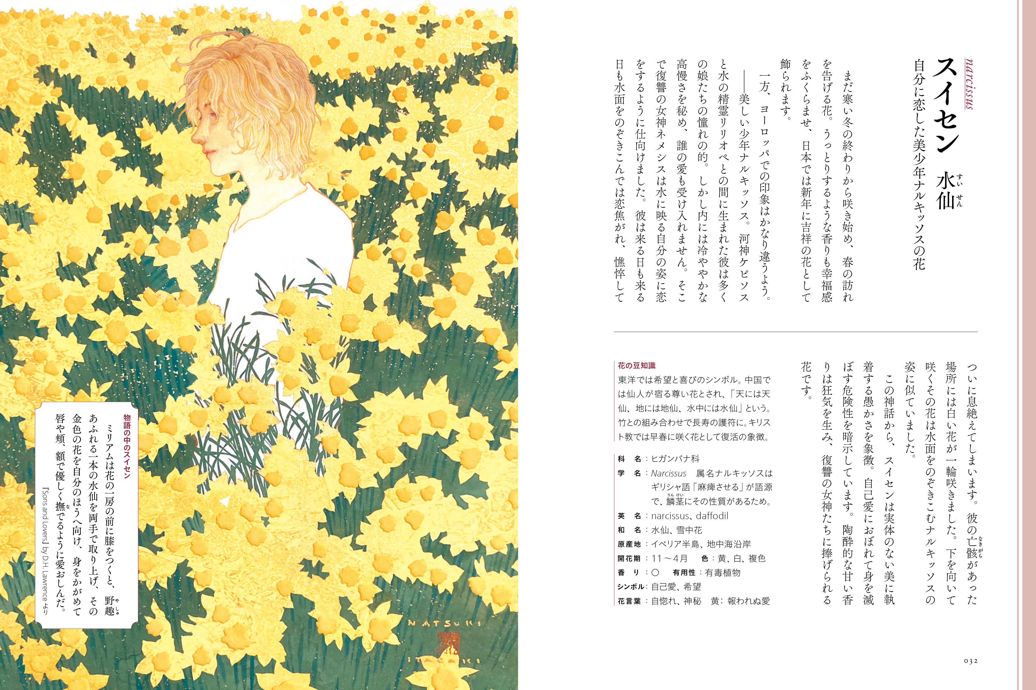 想像力が広がる美しいイラストと共に花の物語をお楽しみください。