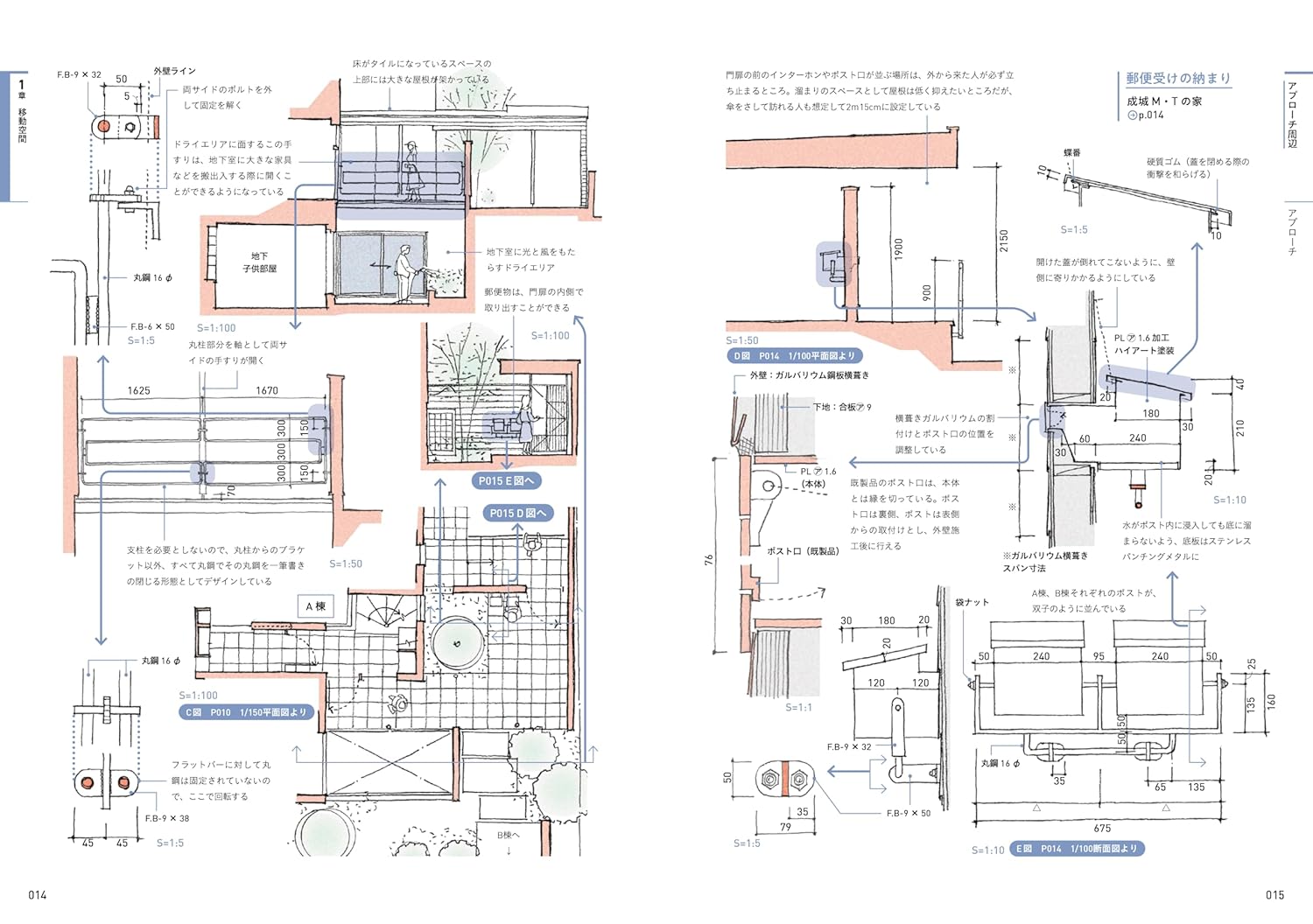 本書は部屋・場所別に、壁や床、建具といった部位の納まりを解説しています。